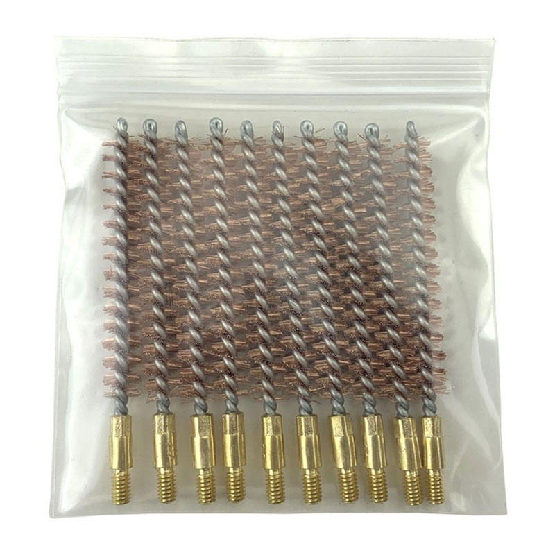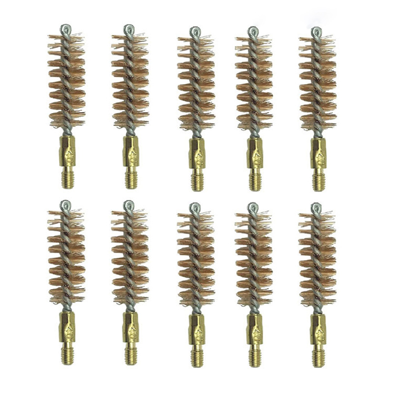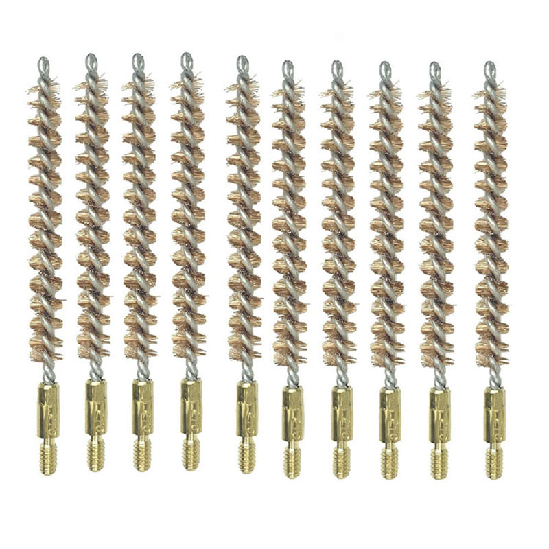 Spazzole Pulisci Pistole in Filo di Bronzo per la Pulizia del Foro ● Fili di ottone per carichi pesanti. Stelo in acciaio antiruggine. ● Il diametro di ciascuna spazzola sarà 0,5-2 mm più grande del diametro interno del foro corrispondente, in modo da poter pulire a fondo il foro. ● Ogni spazzola con il numero del calibro stampato sulla spazzola non è chiaramente visibile. ● Il dado viene premuto saldamente e con forza sullo stelo della spazzola. ● Sono accettati il logo OEM e quello del cliente.