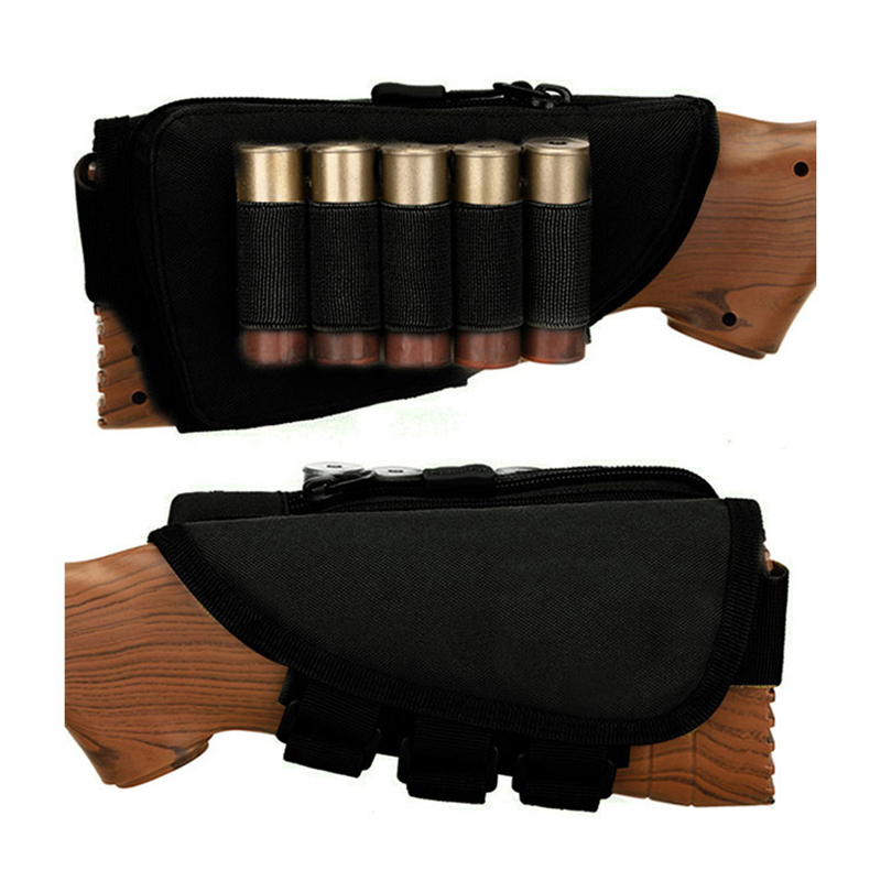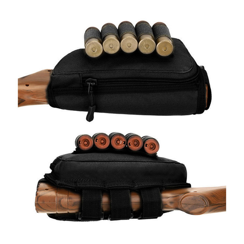 Buttstock Poggiaguancia Supporto per munizioni Supporto per guscio regolabile Porta-caccia per destrimani Borse per proiettili a sgancio rapido per fucile (5 colpi) e un fucile (7 colpi). 2 adesivi magici attaccati agli elastici per munizioni, il supporto con 5 slot è per il guscio del fucile all'interno della custodia con cerniera, il supporto con 7 slot è per i proiettili del fucile all'esterno.