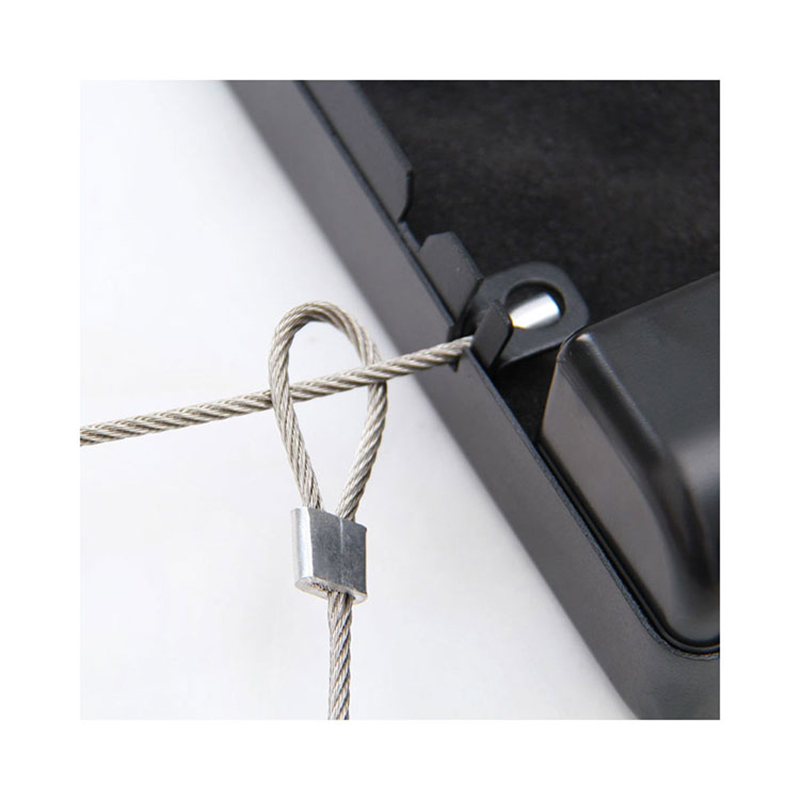 La corda di sicurezza è realizzata in acciaio inossidabile, non arrugginisce, è possibile utilizzare la corda di sicurezza per fissare la cassaforte in macchina o a letto.