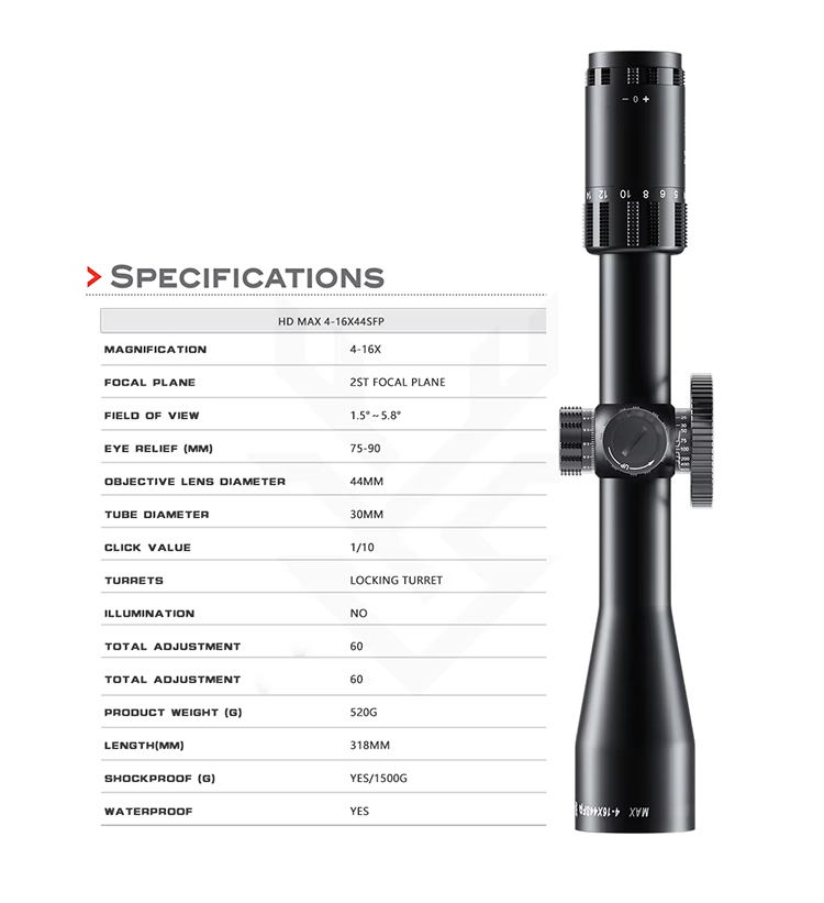 Telescopio monoculare da caccia HD MAX 4-16X44SFP HD con obiettivo alto Vendita all'ingrosso