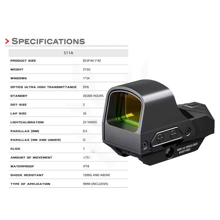 Il mirino ottico compatto a punto rosso da caccia HD511A è disponibile per l'acquisto all'ingrosso in grandi quantità