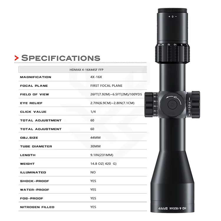 Telescopio monoculare da caccia con obiettivo alto MAX 4-16X44SF FFP HD all'ingrosso
