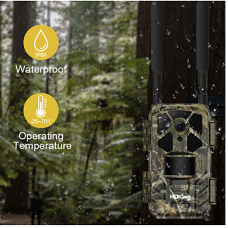 Wireless 4G / Design a doppia antenna / IP65 impermeabile / Sensore CMOS da 5,0 milioni di pixel / Tempo di attivazione rapido 0,5 S / Tempo di standby lungo / Gamma di visione notturna lunga / Temperatura operativa