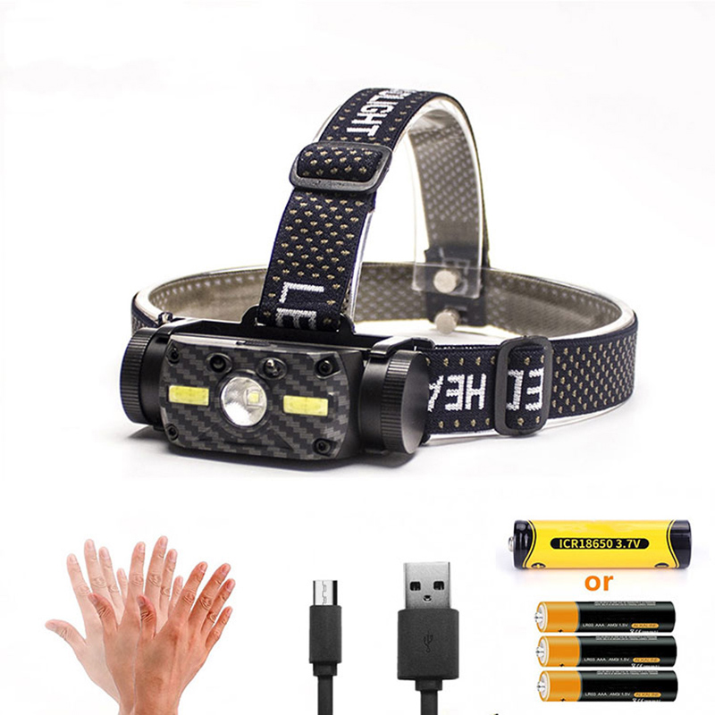 Lampada frontale con sensore di ricarica USB multifunzione in 10 modalità